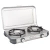 Fornello gas a 3 fuochi stabile e compatto, dotato di coperchio.